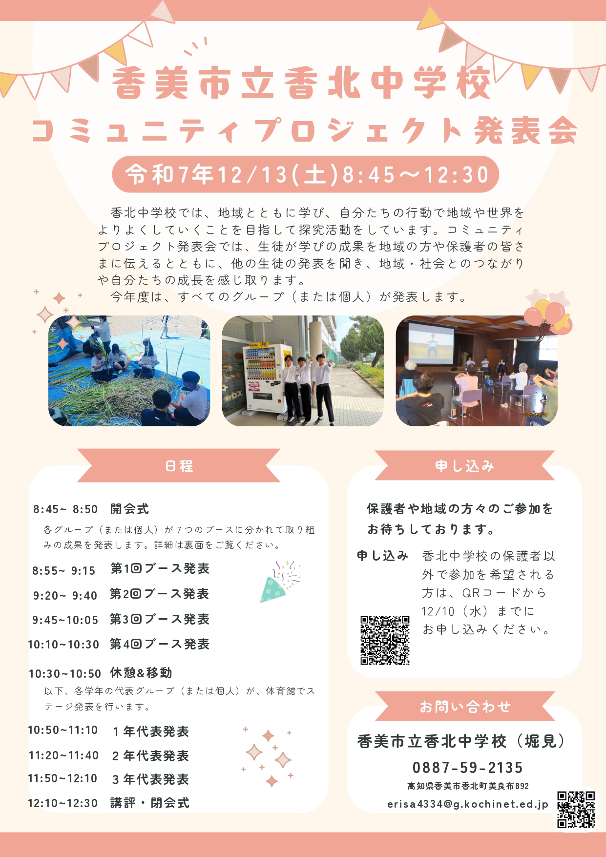 香美市立香北中学校 コミュニティプロジェクト発表会(二次案内)