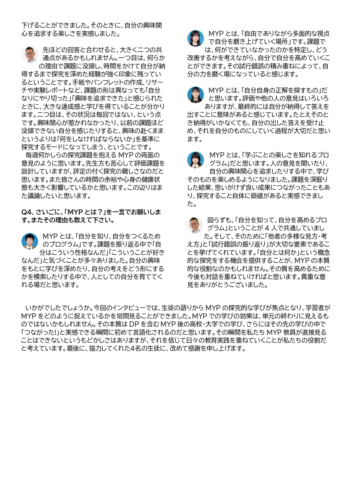 MYP現役生・修了生が捉える、MYP教育の学習効果