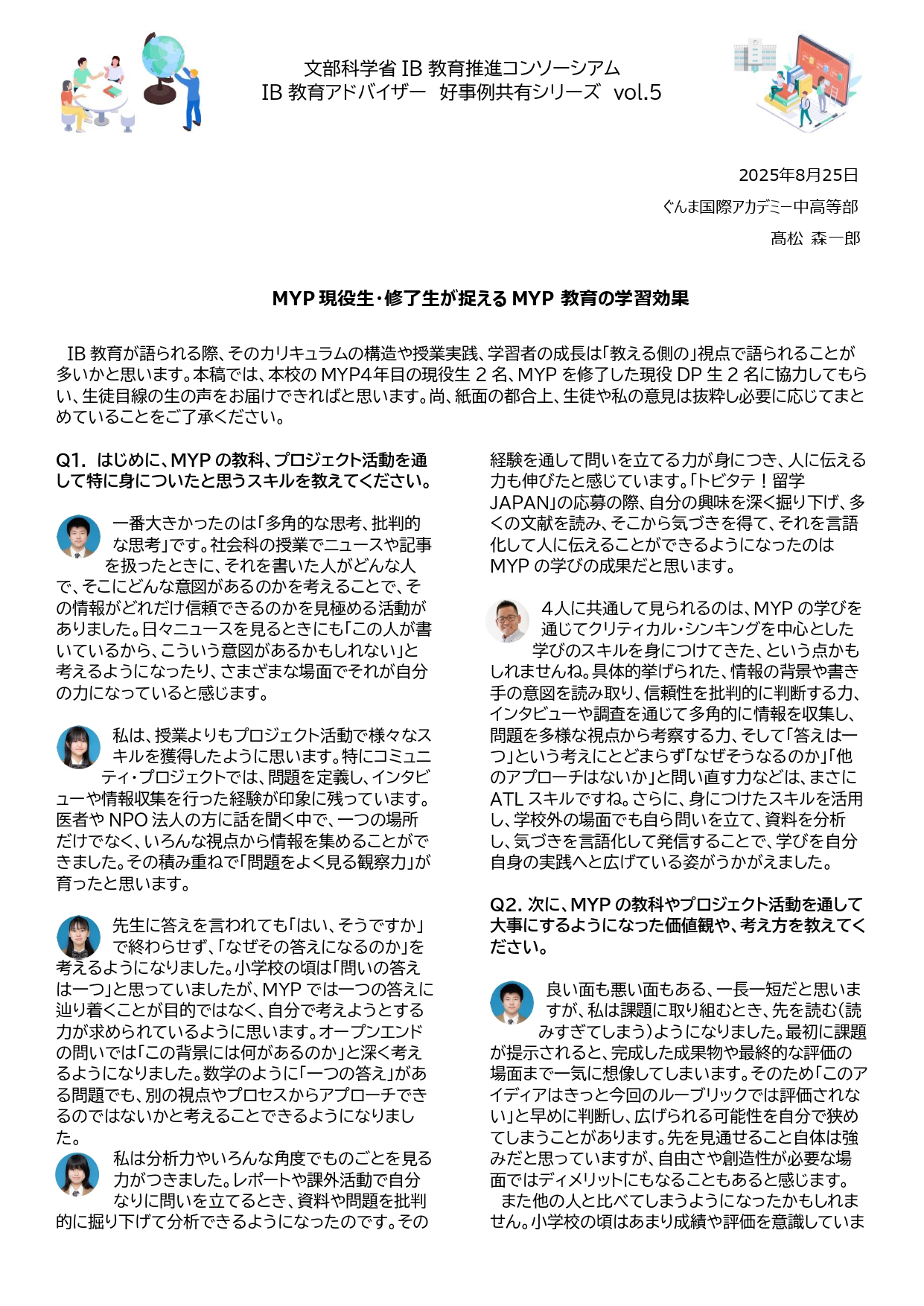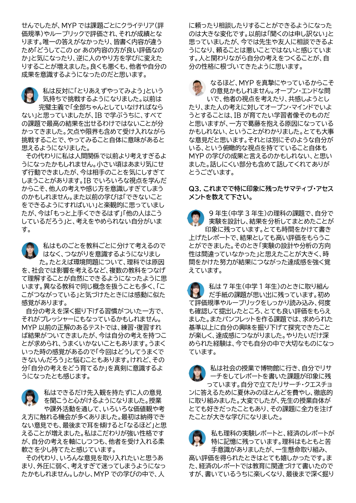 IB修了生の声・教員の教育実践事例