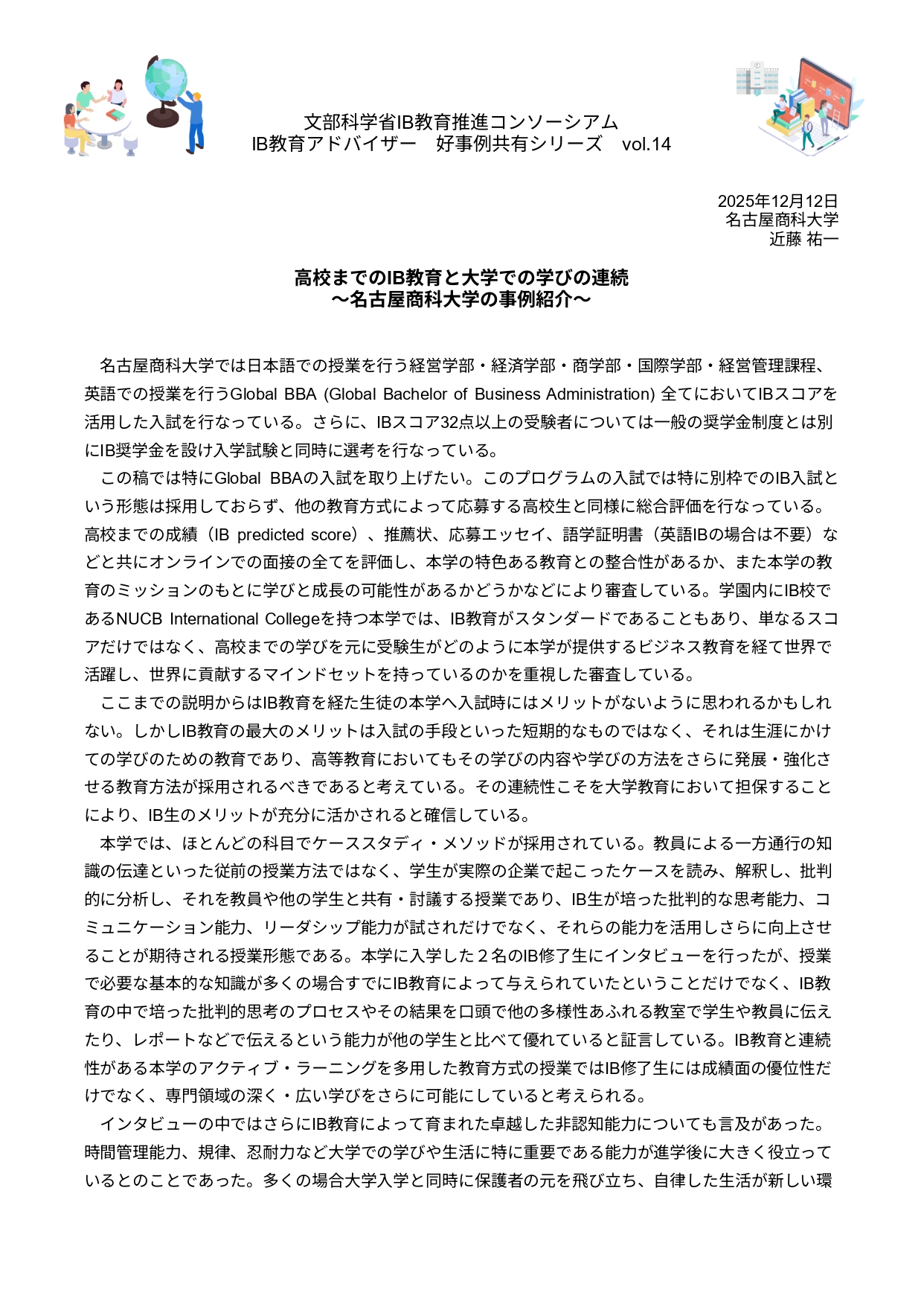 ⾼校までのIB教育と⼤学での学びの連続 〜名古屋商科⼤学の事例紹介~