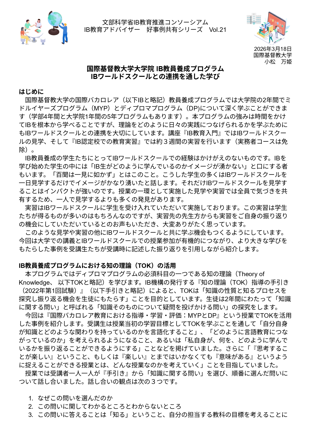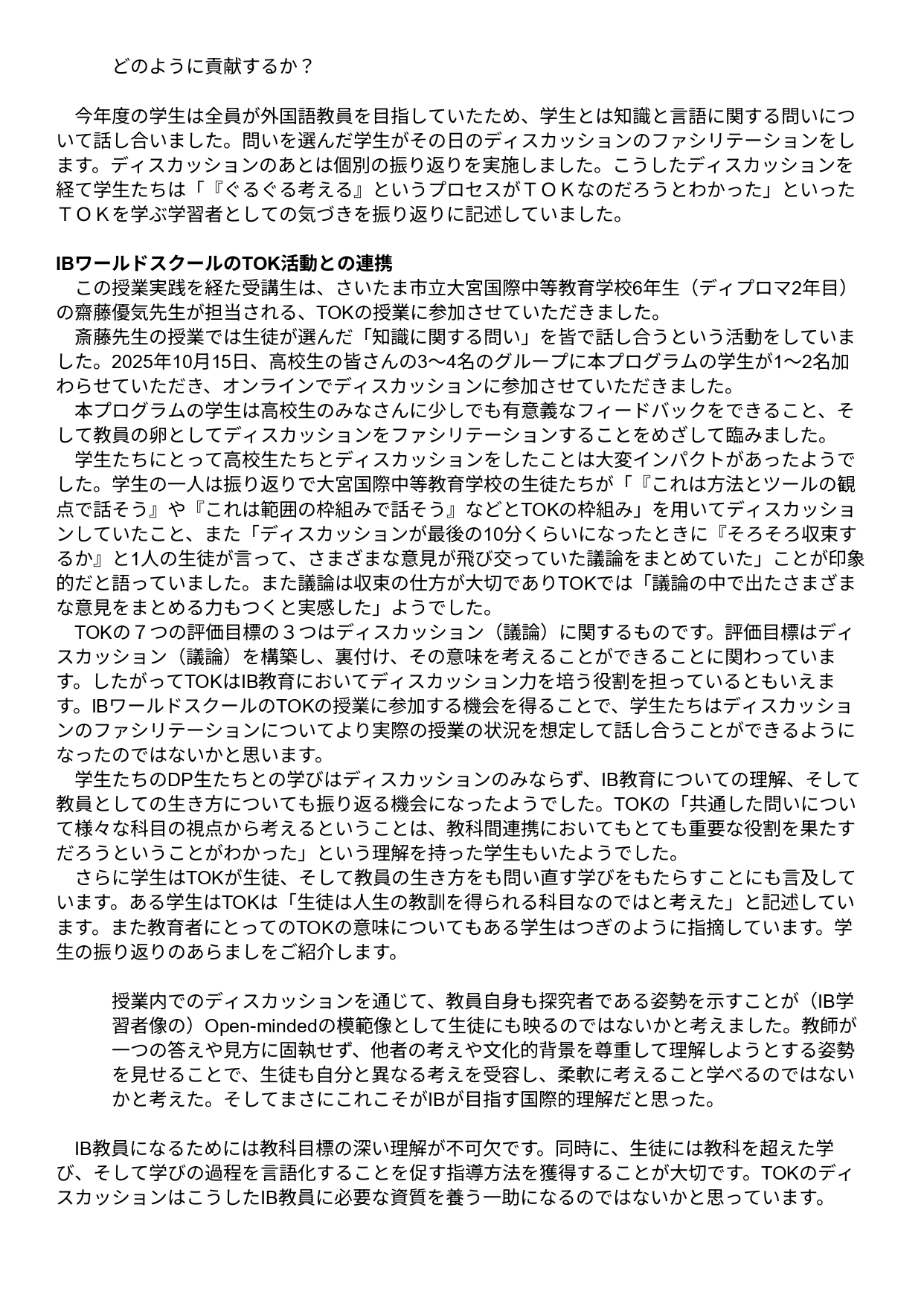 国際基督教大学大学院 IB教員養成プログラム IBワールドスクールとの連携を通した学び